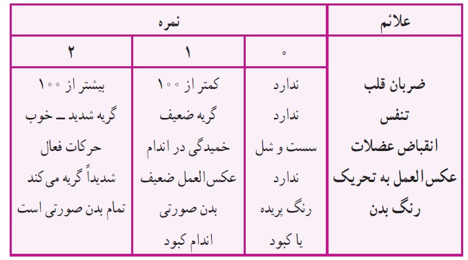 • در صورت عدم تنفس نمره صفر برای کودک منظور می گردد.