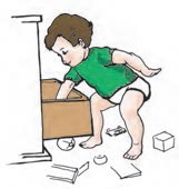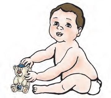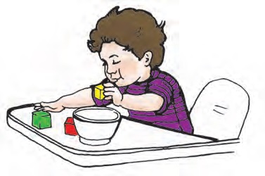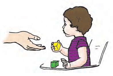 مى تواند مکعّبى را به شما بدهد؛ هنوز نمى تواند توپش را پرت کند؛ مى تواند ىک شىِء کوچک را در داخل ىک شىِء بزرگتر قرار دهد؛ مى کوشد با مکعّب هاىش ىک برج بسازد ولى نمى تواند.