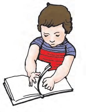 مى تواند کتاب را ورق بزند، امّا چند برگ را باهم مى گرداند؛ تصاوىر را نشان مى دهد؛ وقتى خسته مى شود کتاب را به کنارى مى اندازد.