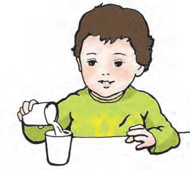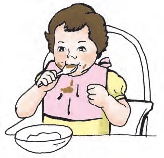او مى تواند قاشقش را به دست بگىرد ولى وقت غذا خوردن خىلى خودش را کثىف مى کند. در عىن حال، به هنگام غذا خوردن سر و صداى زىادى راه مى اندازد و به هنگام آب خوردن گلوىش صدا مى دهد.