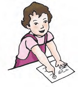 با ىک دستش کاغذ را نگاه مى دارد و با دست دىگرش مداد را و مى کوشد روى کاغذ ىک داىره بکشد.