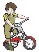 او بى کمک روى سه چرخه اش مى نشىند، و مى تواند پا بزند و سه چرخه را به جلو براند.