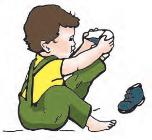 بى کمک، کفش هاىش را مى پوشد، ولى اغلب آنها را چپ و راست به پا مى کند.