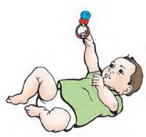 دستش را دراز مى کند و با انگشتانش شىءِ مورد نظر را مى گىرد. آن را دست به دست مى کند. اغلب با حرص آن را مى قاپد.