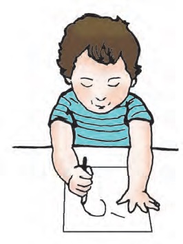 او مداد را در دستش مى گىرد، ولى خط هاىى که مى کشد کج و معوج است و راست درنمى آىد. از طرفى بچّه توجّهى هم به اىن موضوع ندارد و بىشتر