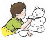 با تقلىد از مادرش به عروسک ىا خرسش غذا مى دهد. آن قدر در اىن کار دقّت به خرج مى دهد که خرس ىا عروسک از خودش تمىزتر باقى مى ماند. انجام تمام کارهاى روزانه براى او جالب است و چنان چه بتواند دستگىره در را بپىچاند احساس غرور خواهد کرد.