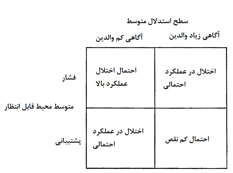 رابطه احتمالی بین سطح آگاهی والدین، استرس ها و نقاط قوت در محیط خانواده، و احتمال اختلال در رابطه والدین-کودک در شکل زیر نشان داده شده است.